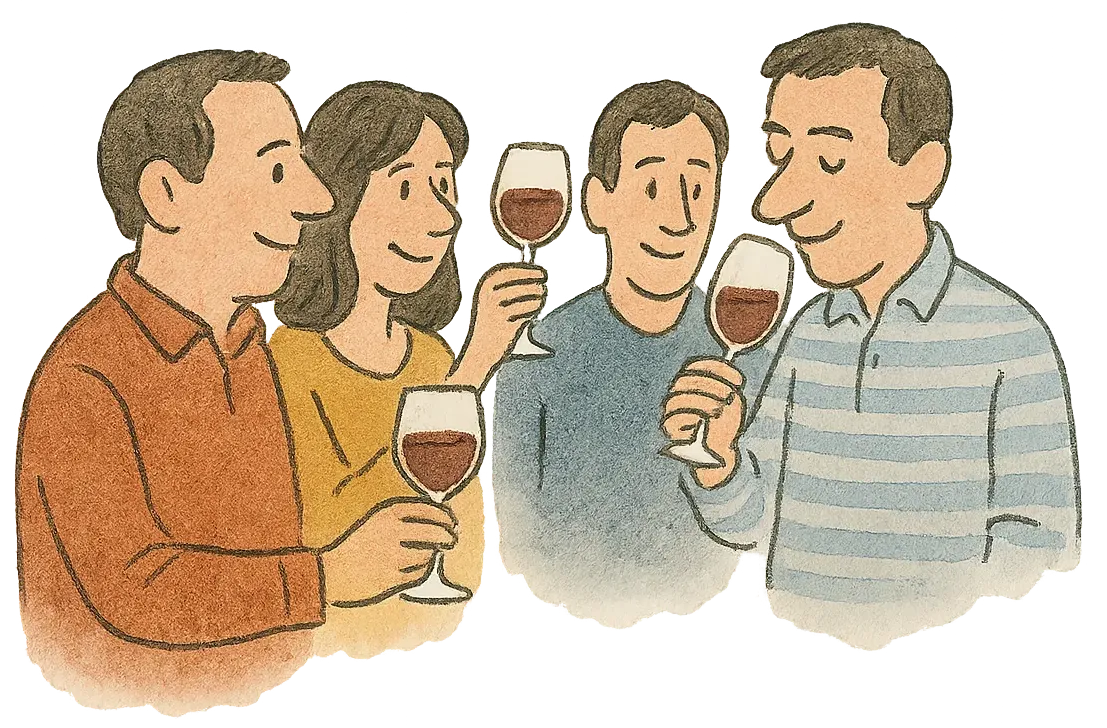 Nous sommes quatre fondateurs : Coralie, Arnaud, Mathieu et Grégory, dont le trait d'union est bien évidemment le vin et l'amour des vignes. Nous ne nous connaissions pas avant de nous rencontrer dans différents clubs de dégustation de notre région commune, les Yvelines. Au fil de nos dégustations s'est dégagée une attirance commune pour les vins de caractère, les vins d'auteurs, ceux qui ont la gueule de leur géniteur ou de l'endroit dont ils proviennent. Pour nous peu importe le prestige de l'étiquette, seules comptent la personnalité du vin et du vigneron qui l'a élaboré et l'émotion qu'ils parviennent à nous procurer. Depuis plusieurs mois que nous prenons plaisir à partager nos découvertes respectives réalisées dans les 4 coins de la France, peu à peu nous est venue l'idée de proposer le résultat de nos recherches et nos coups de cœur à un public extérieur.